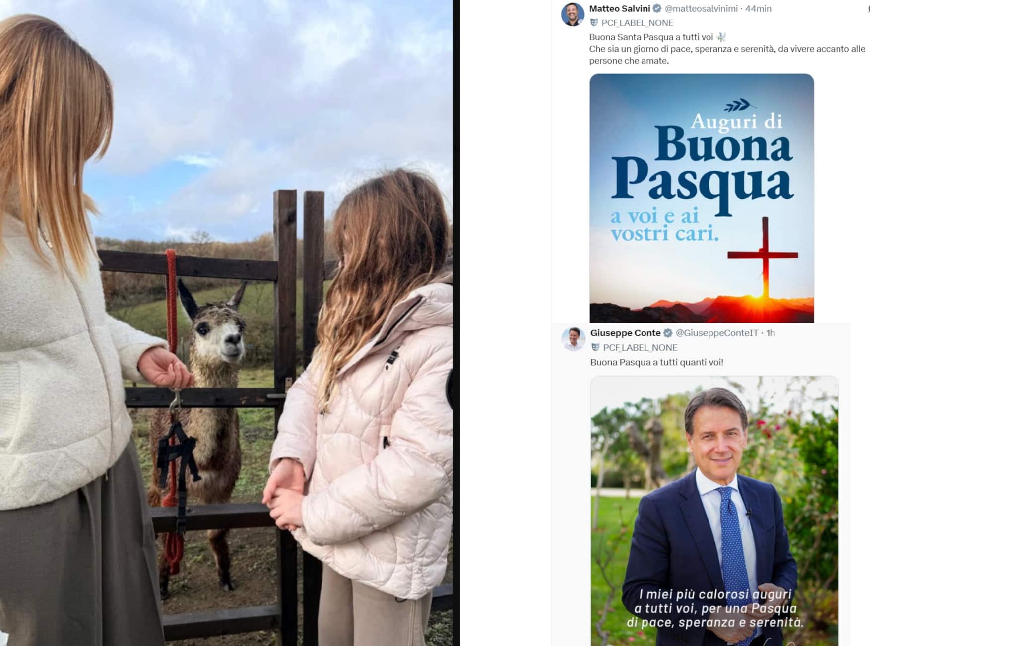 Nella domenica di Pasqua, sono diversi i politici italiani che hanno postato sui social messaggi di auguri. La premier Meloni ha pubblicato una foto con la figlia. Salvini: “Che sia un giorno di pa…